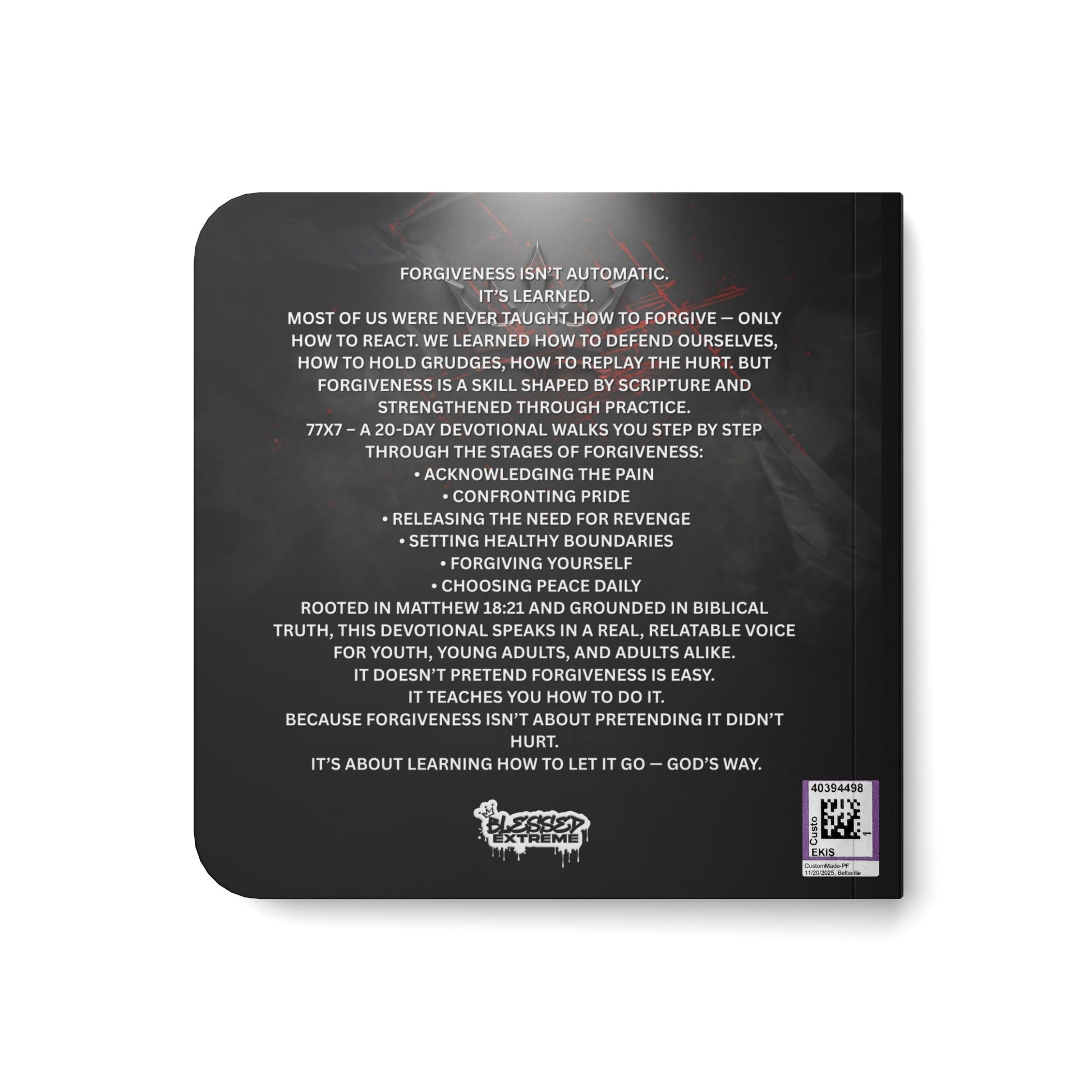 Inspired by Matthew 18:21–22, where Jesus calls us to forgive “seventy-seven times,” this devotional breaks down what forgiveness truly looks like in everyday life. It speaks honestly about pain, boundaries, pride, bitterness, and learning how to release what’s been holding you hostage.
