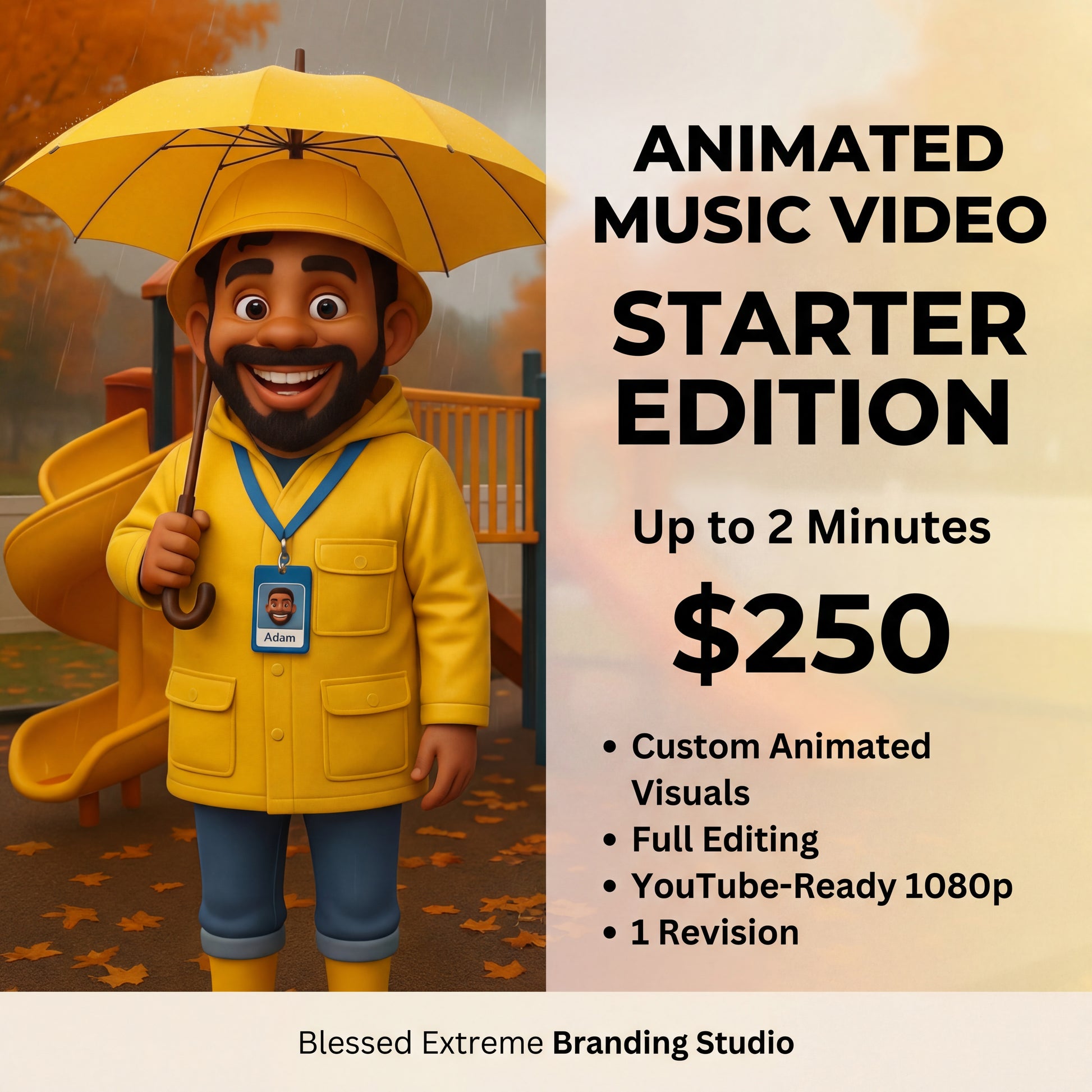 This deposit secures your production slot for a custom animated music video.